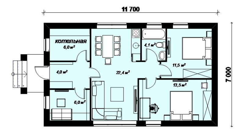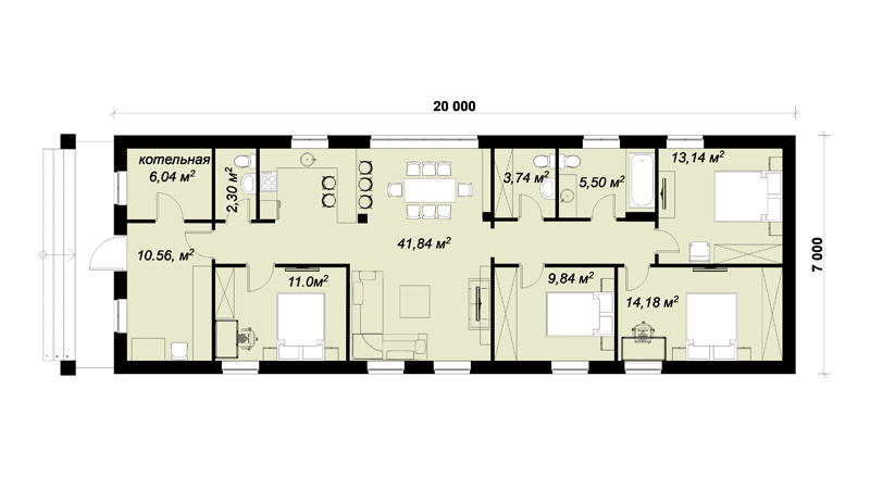 Дом АНТУРИУМ уникален по вместимости - при ширине всего 7 м и площади всего 92 м2 - в нем разместились четыре спальни, что является редкостью для одноэтажных домов с такой шириной и площадью. Антуриум подойдет как для постоянного проживания семьи из 4 - 7 человек, так и для сезонного отдыха или сдачи в аренду.
